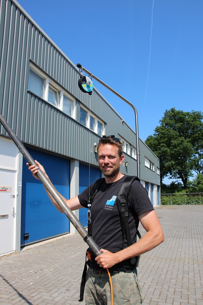 Fred de Ridder (37) startte op jonge leeftijd als glazenwasser. Hij werkt nu 22 jaar in de glazenwassersbranche. ‘Eerst werkte ik op de zaterdagen bij een schoonmaakbedrijf om wat zakgeld te verdienen. Later (op mijn 21ste) ben ik voor mezelf begonnen,’ vertelt hij. Bij de start van zijn bedrijf had hij vooral particuliere klanten en werkte hij alleen. In de loop der jaren is de omslag gemaakt naar de zakelijke markt en nu heeft hij een aantal medewerkers in dienst. ‘Mijn huidige klantenbestand bestaat onder andere uit een grote supermarktketen, twee schildersbedrijven en aantal VvE’s en kantoorpanden.’ Ongeveer 12 jaar geleden maakte hij kennis met het telescoopsysteem in combinatie met demi water. ‘Ik was meteen verkocht. Na twee keer een karretje te hebben gehuurd heb ik zelf een systeem aangeschaft.’